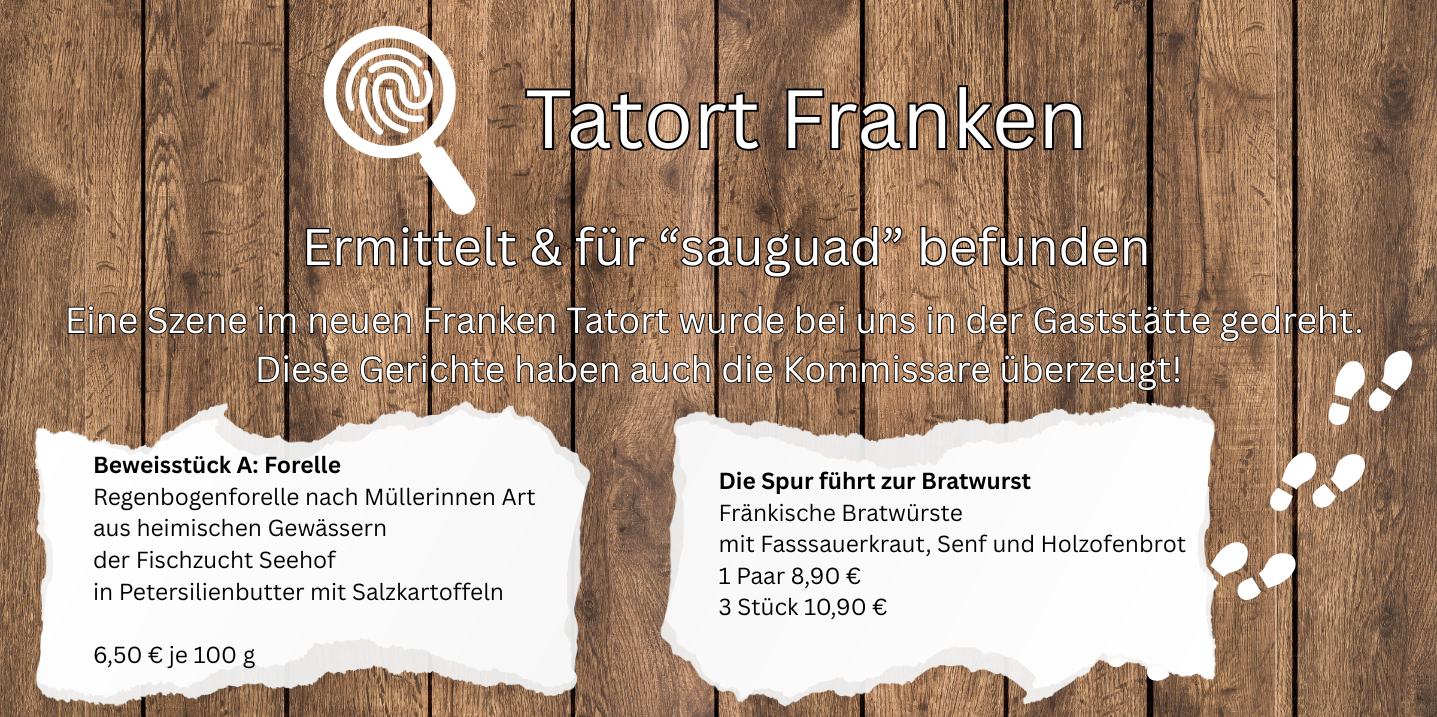 Fühlen sie sich wie Zuhause in unserer Alten Mühle. Gerne übernehmen wir den Spruch eines Stammgastes zum Motto von uns: "Du kommst als Gast und gehst als Freund." Genießen sie in ruhiger Lage fränkisch, moderne Küche mit heimischen Bieren und Weinen. Lassen sie die Seele baumeln in unserem romantisch-urigen Ambiente.